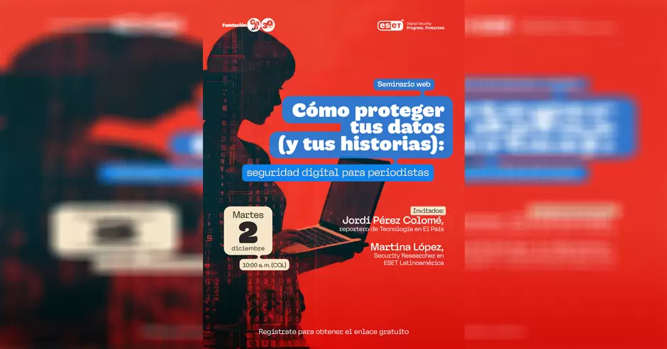 Este taller gratuito contará con la participación de Jordi Pérez Colomé (España), reportero de Tecnología en el periódico El País que conversará con Martina López (Argentina), Security Researcher en ESET Latinoamérica, sobre los desafíos y recomendaciones clave para periodistas.