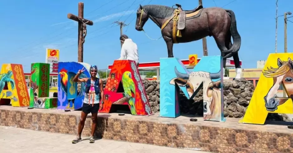 El atleta Edgar Santiago Liñán Reyes llegó este miércoles al municipio de Aldama, en un recorrido que hizo desde Matamoros, para cumplir la promesa a su padre (quien se encuentra enfermo) de visitar la tumba de sus abuelos.