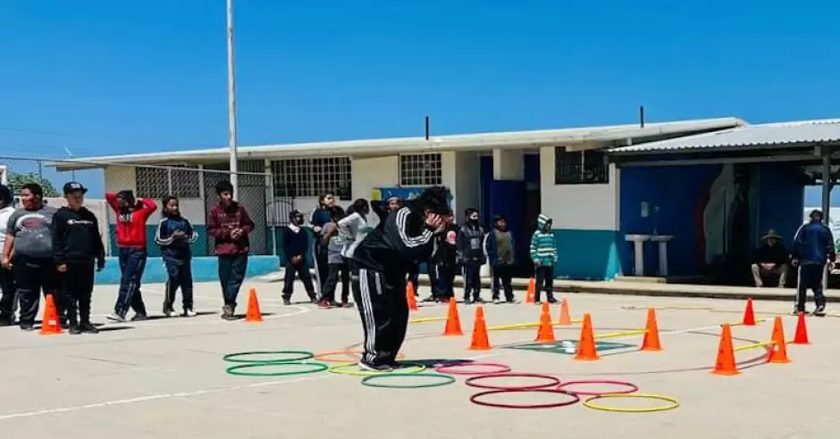 ENSENADA.- Con el objetivo de sembrar e impulsar el deporte y la activación física en la niñez de todos los rincones de la entidad, el Instituto del Deporte y la Cultura Física de Baja California (INDE BC), a través del Departamento de Activación Física y Deporte para Todos y su programa "Deporte Estudiantil", activó a 180 estudiantes de la Escuela Primaria Indígena Jesús Ibarra Aranda.