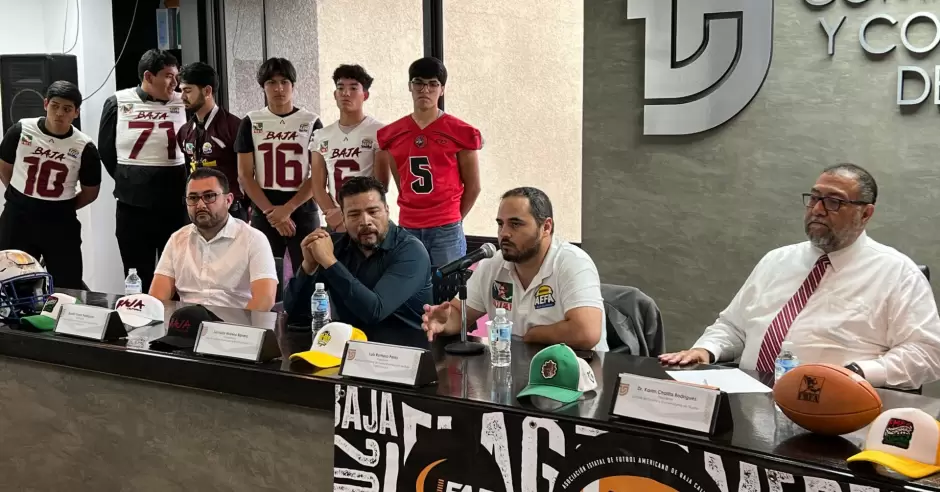 En la conferencia también estuvieron Armando Varela Ramírez, entrenador de la AEFABC; Salvador Moreno Barrera, comisionado de la Liga de Football Americano de BC; Eduardo Alvarado Miramontes, coordinador de la AEFABC; Rodolfo Flores Vázquez, entrenador; y Raúl Martínez Nevarez, entrenador.