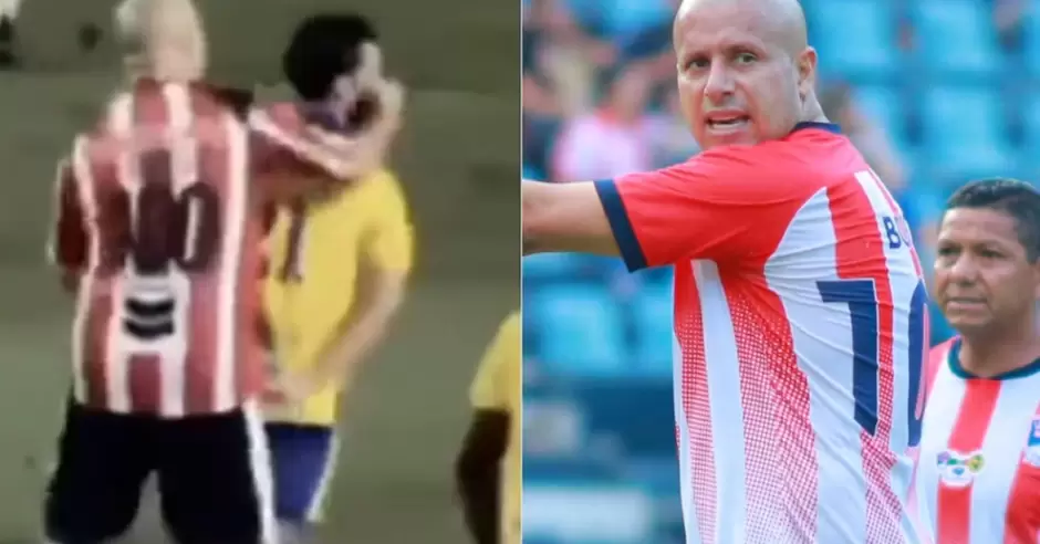 El exjugador rojiblanco, quien portó en el duelo su tradicional número 100 en la espalda, se enganchó en una discusión con Daniel "Chepe" Guerrero, con quien tuvo una serie de empujones y a quien terminó lanzándole un puñetazo en el rostro.