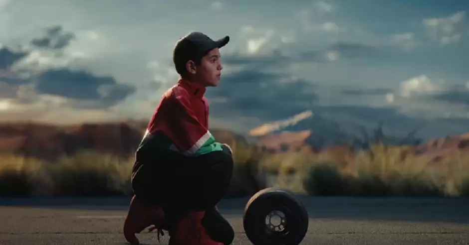 A través de un ejercicio de introspección, vemos a un Checo Pérez adulto que no habla, sino que escucha a su "niño interior", quien le recuerda aquel primer empujón en las pistas de Guadalajara.