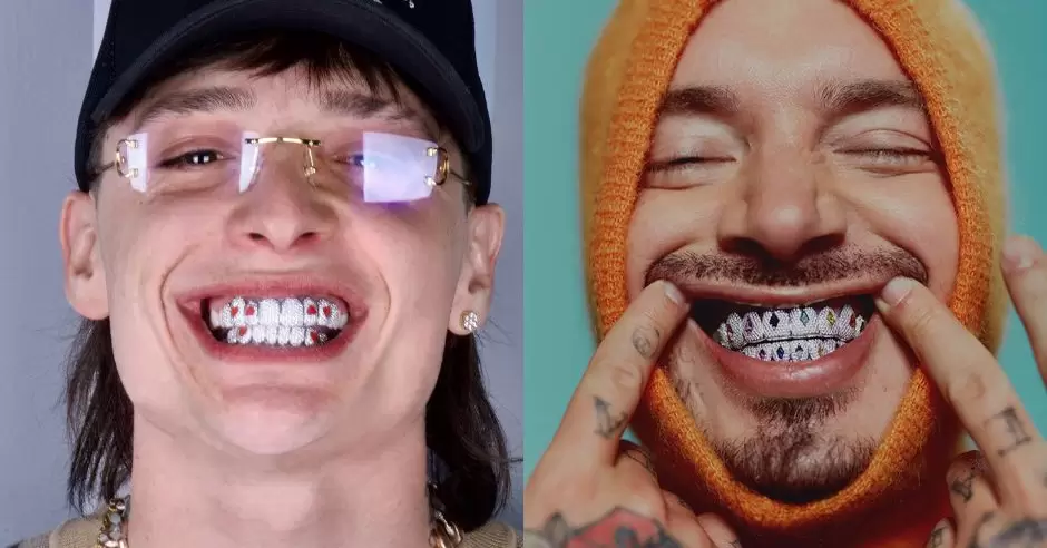 En 2022, J Balvin se unió a esta moda de lucir unos dientes de lujo, portando varias dentaduras con diamantes.