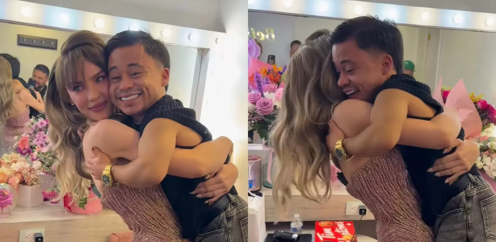 El momento que captó la atención del público fue cuando Abelito acudió a los camerinos para saludarla y entregarle un arreglo floral.