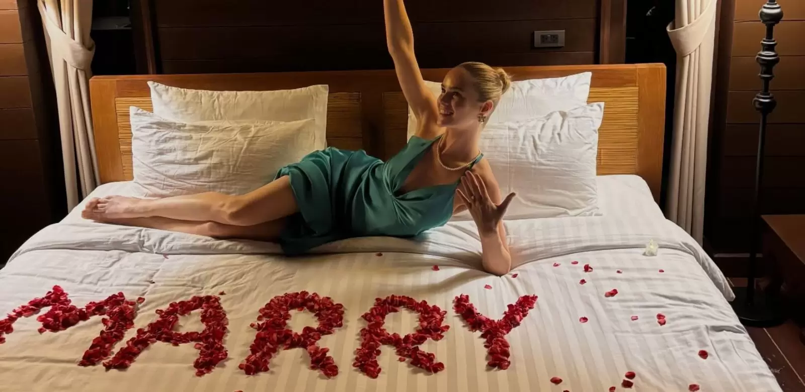 Inna compartió en sus redes sociales varias fotografías del momento, incluyendo la imagen de él arrodillado y otra con pétalos de rosa formando la frase "Marry me?" sobre la cama.