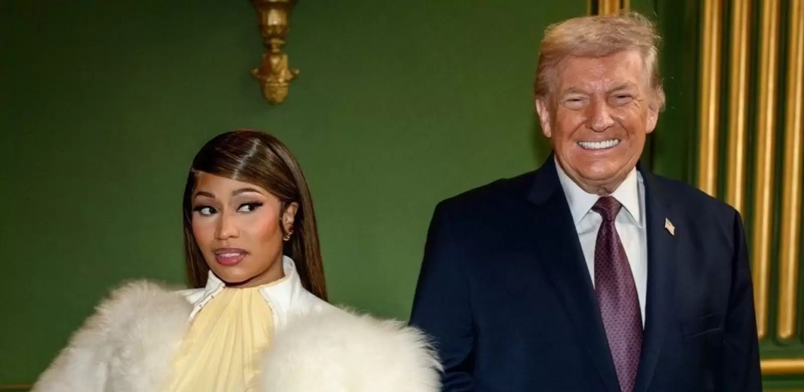 La rapera y el presidente fueron vistos tomados de la mano en el escenario, un detalle que se volvió viral en redes sociales y que ilustró visualmente el inesperado apoyo político de Minaj.