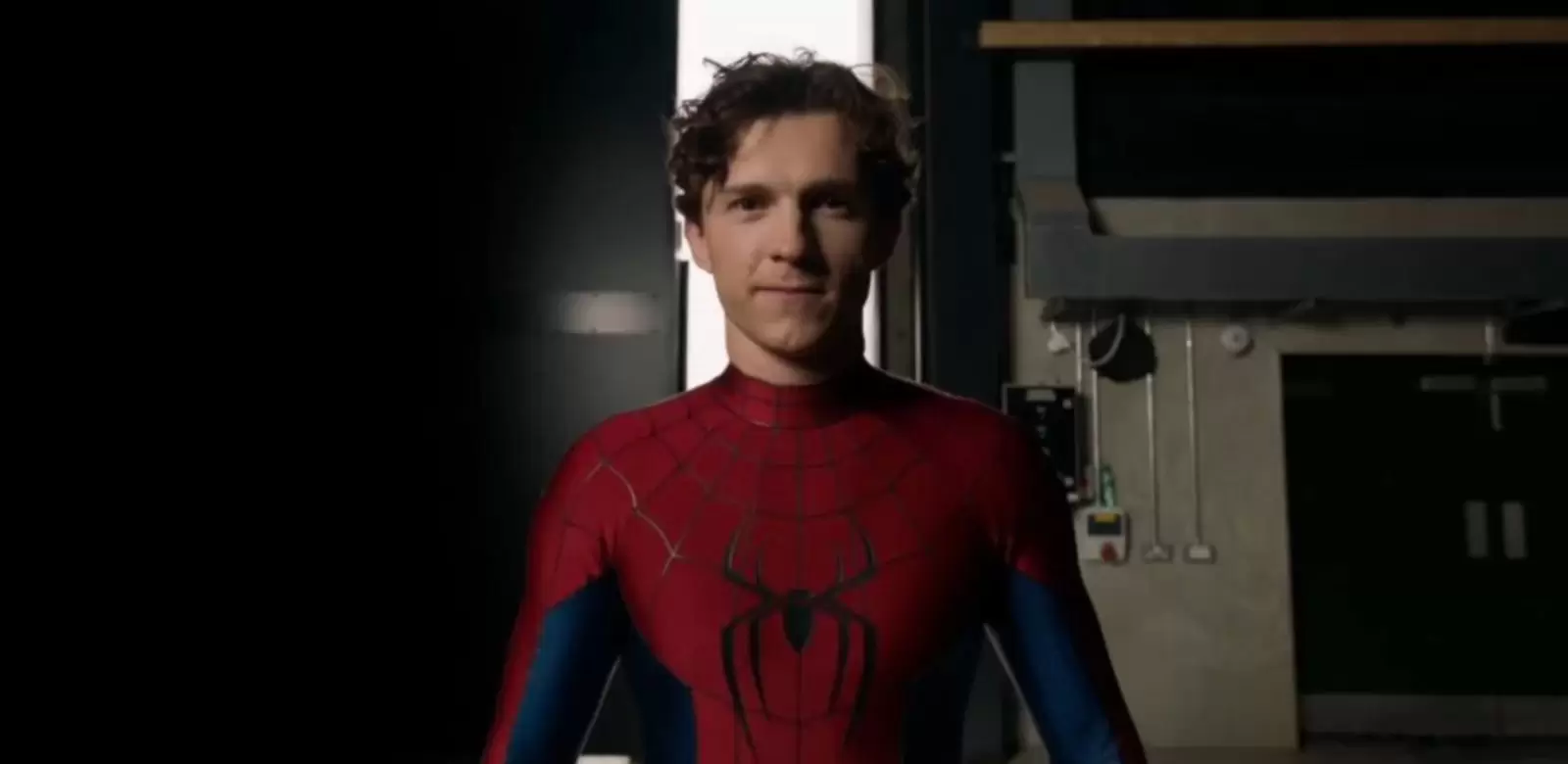En el breve clip titulado "¿Están listos?", el actor entra en un espacio iluminado y muestra el traje en su totalidad al ritmo de una versión moderna del tema de Spider‑Man compuesta por Michael Giacchino.
