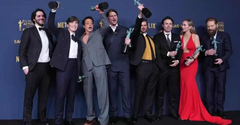 Cuando el equipo de la película "Oppenheimer" subió al escenario a recibir el galardón a Mejor Reparto, el veterano Kenneth Branagh habló en nombre de compañeros de elenco como Cillian Murphy y Robert Downey Jr, quienes por su lado obtuvieron los de las categorías Actor y Actor de Reparto.