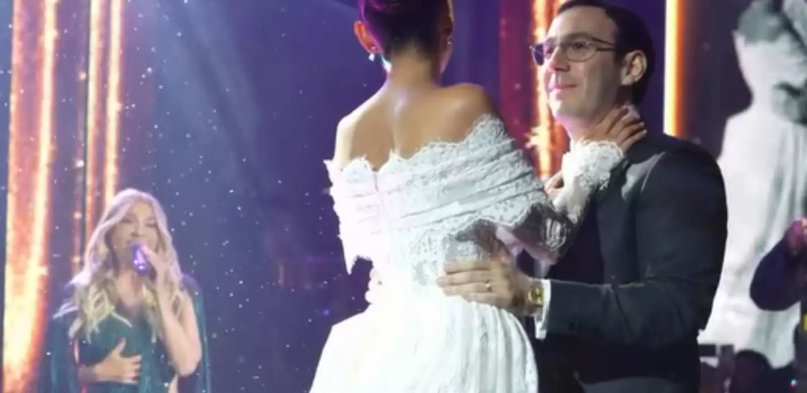 La sorpresa se dio en pleno vals de los novios, cuando Yuri apareció en la pista y comenzó a cantar en vivo la canción "Todo mi corazón".