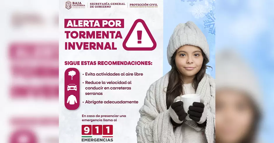 El Gobierno del Estado, encabezado por Marina del Pilar Avila Olmeda, a través de la Secretaría General de Gobierno a cargo de Alfredo Álvarez Cárdenas, reafirma su compromiso con la seguridad de las familias bajacalifornianas, manteniendo un monitoreo permanente de las condiciones climáticas y activando los protocolos de respuesta necesarios ante la tormenta invernal.