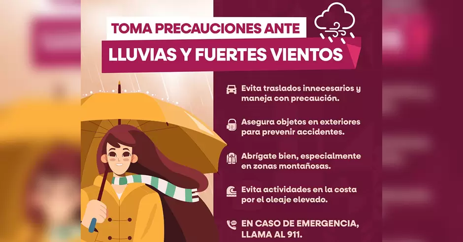 Ante este panorama para las fiestas de fin de año, las CEPC exhorta a la población a seguir las recomendaciones de seguridad como quedarse en casa, evitar cruzar corrientes de agua, asegurar objetos en exteriores, abrigarse, evitar traslados innecesarios hacia zonas serranas y manejar con precaución en carretera.
