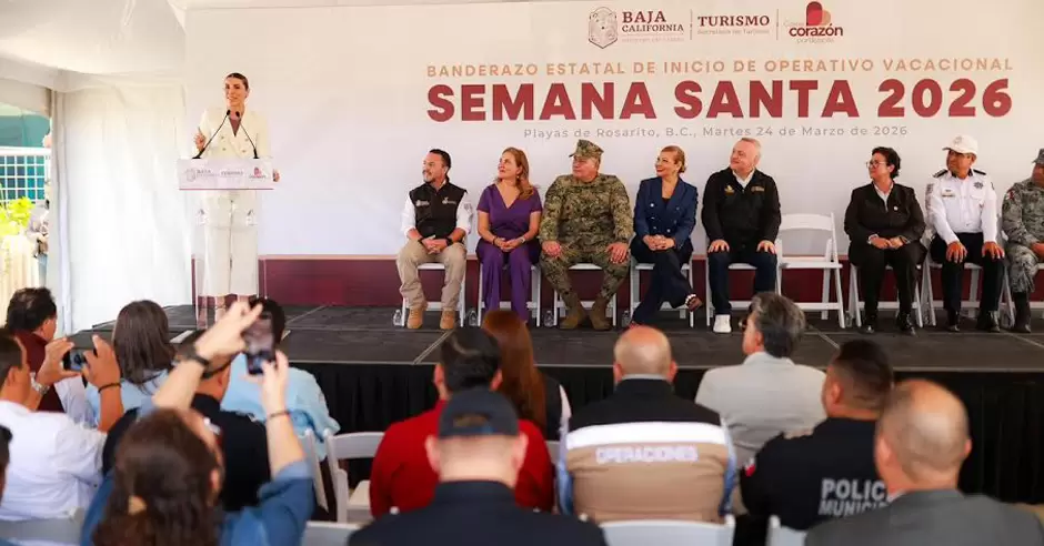 PLAYAS DE ROSARITO. - Con el objetivo de garantizar la seguridad, la tranquilidad y el bienestar de las familias bajacalifornianas y de quienes visitan la entidad, la gobernadora Marina del Pilar Avila Olmeda dio inicio al Operativo Vacacional de Semana Santa 2026 "En Baja California Seguro te Diviertes", en coordinación con autoridades de los tres órdenes de gobierno.