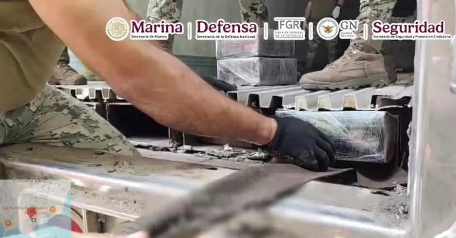 Los hechos ocurrieron cuando efectivos de la Unidad Naval de Protección Portuaria de Mazatlán, al inspeccionar un tractocamión con equipo de rayos "X" y con apoyo de tres binomios caninos, detectaron un doble fondo donde se encontraron 494 paquetes.