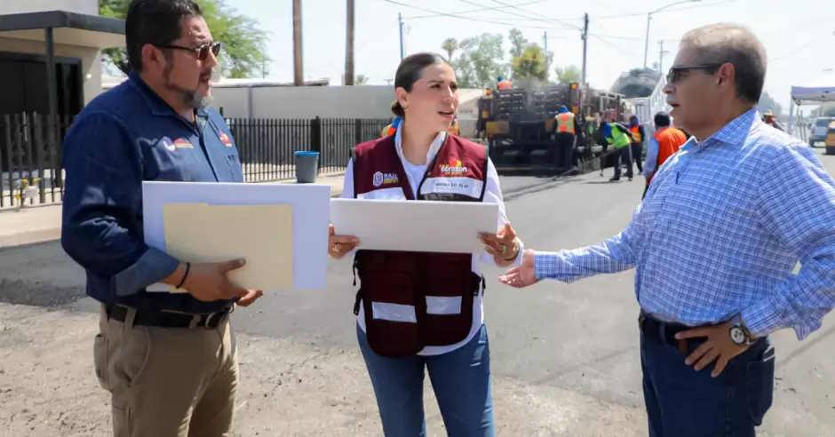 MEXICALI.- Como parte de las obras para mejorar la calidad de vida de la población más vulnerable, la gobernadora Marina del Pilar Avila Olmeda, supervisó los trabajos de pavimentación que se realizan en la colonia Alamitos, desde donde brindó un reporte de los avances en las obras de rehabilitación de vialidades en la ciudad de Mexicali.