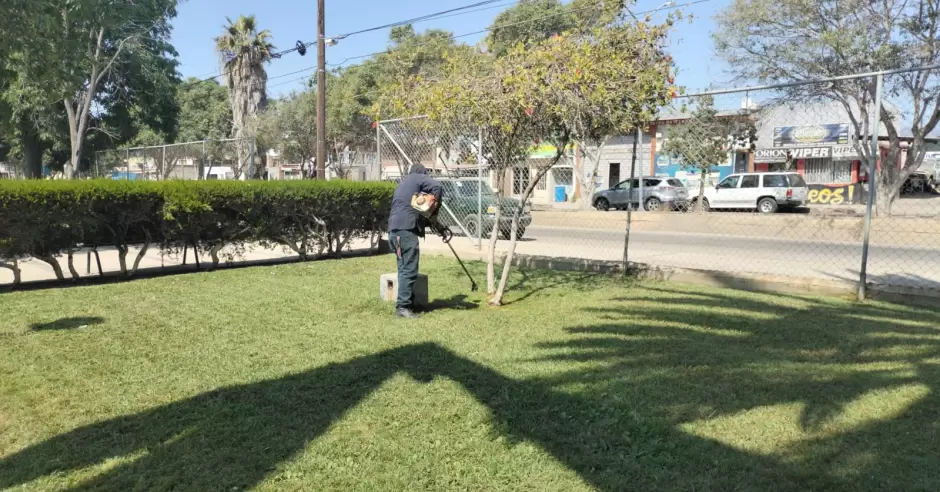 ENSENADA.- Como parte de las acciones para dignificar los espacios públicos utilizados para la práctica deportiva y el sano esparcimiento, el Gobierno de Ensenada realizó una jornada de mantenimiento en el Parque Morelos.