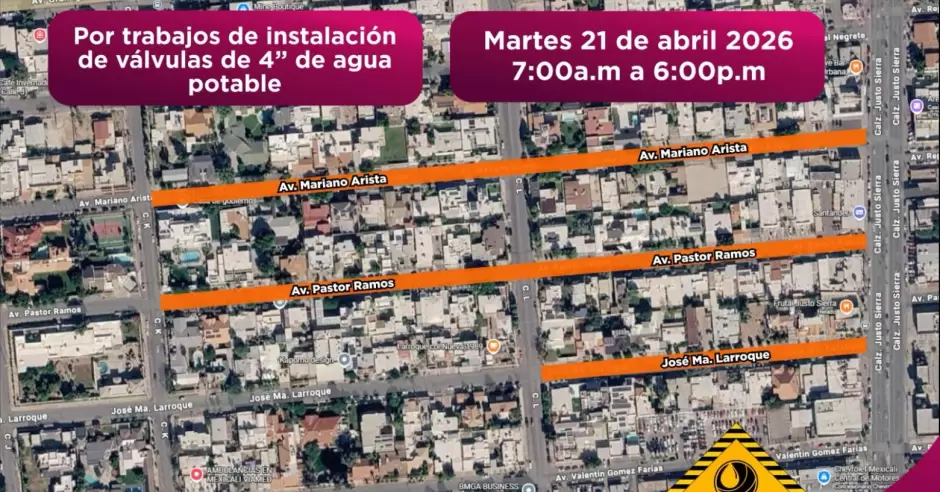 De manera simultánea, en la colonia Nueva, se efectuarán trabajos de instalación de válvulas de 4 pulgadas en la red de agua potable. Las labores se desarrollarán de 7:00 de la mañana a 6:00 de la tarde, afectando principalmente las avenidas Mariano Arista, Pastor Ramos y José María Larroque.