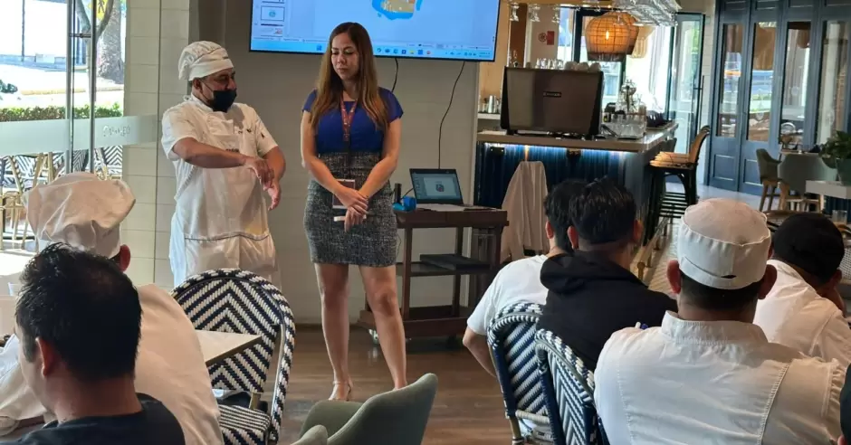 Durante la capacitación se hace una demostración con luz ultravioleta, donde se muestra la contaminación que pueden tener en las manos por un deficiente lavado, por lo cual se mostró la técnica para de forma correcta de higienizarlas, también se les recomienda el contar con alcohol gel para estar desinfectándolas de forma continua.