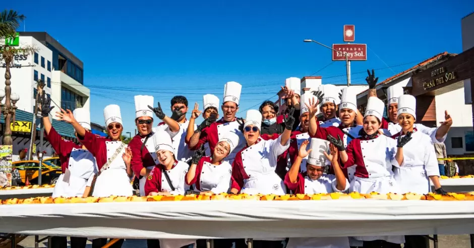 ENSENADA.- Como parte de las acciones para fortalecer la convivencia comunitaria, preservar las tradiciones y promover el bienestar social, la alcaldesa Claudia Agatón Muñiz encabezó la celebración de la Mega Rosca de Reyes de más de 500 metros, elaborada por estudiantes de la Escuela de Gastronomía de la Universidad Vizcaya de las Américas, campus Ensenada.