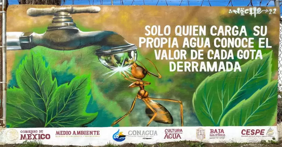 ENSENADA.- Con el objetivo de concientizar de manera visual a la ciudadanía sobre la importancia del cuidado y uso responsable del agua, así como del valor de este recurso en nuestra vida, la Comisión Estatal de Servicios Públicos de Ensenada (CESPE) realizó la pinta de murales titulados "Cuando proteges el agua, proteges la vida".