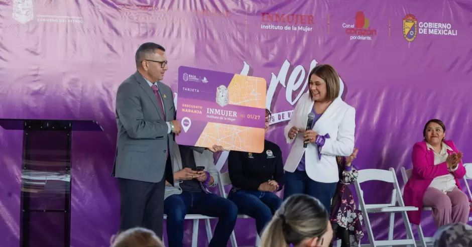 Como parte de su mensaje a las presentes, Vargas Núñez resaltó la creación de la Tarjeta Naranja, misma que, con el apoyo de la Cámara Nacional de Comercio (CANACO) y del gobierno bajacaliforniano, la cual permite a usuarias de servicios del INMUJER BC obtener descuentos en diversos establecimientos, ahorrándoles recursos e impulsando su pleno desarrollo para salir y superar cualquier ciclo de violencia.