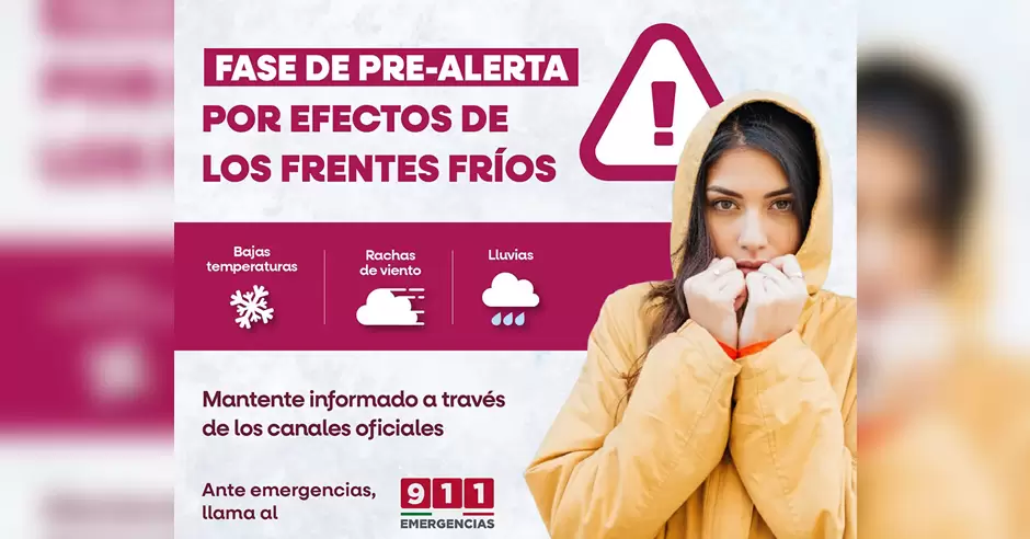 Al respecto, el titular de la CEPC, Salvador Cervantes Hernández, recordó que este escenario es provocado por la aproximación de un nuevo frente frío que interactúa con una vaguada en niveles medios y altos, así como con la corriente en chorro polar.