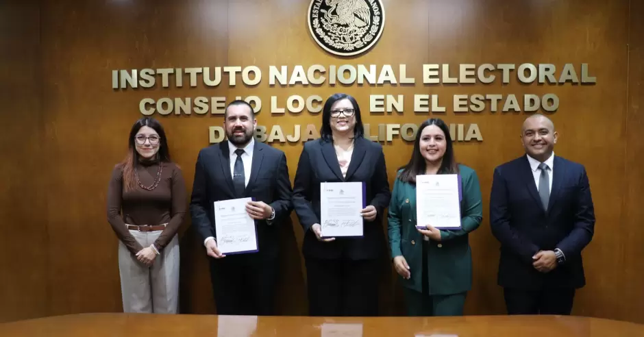 La entrega se llevó a cabo en la Sala de Sesiones de la Junta Local Ejecutiva, con la presencia de las y los Vocales Locales del INE BC: María Magdalena Pérez Ortiz, Vocal Secretaria; Vocal de Capacitación Electoral y Educación Cívica; Marco Antonio Cruz Izalde, Vocal del Registro Federal de Electores; y Juan Alejandro Ramírez Hernández, Vocal de Organización Electoral.