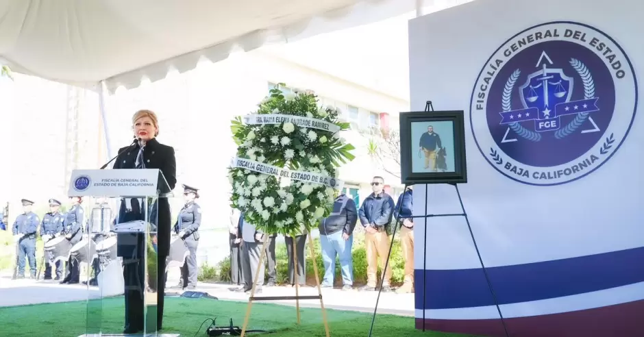 ENSENADA.- La Fiscalía General del Estado (FGE), encabezada por la Fiscal General, Dra. Ma. Elena Andrade Ramírez, llevó a cabo la ceremonia de honras fúnebres en memoria del subcomandante operativo de la Agencia Estatal de Investigación (AEI) en Ensenada, Israel Ortiz Castillo, como un acto solemne de reconocimiento a su entrega, valor y compromiso con la procuración de justicia en Baja California.