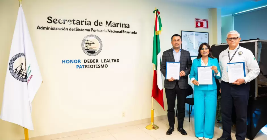 En la firma del acuerdo también participaron: almirante en retiro Luis Javier Robinson Portillo Villanueva, titular de Asipona Ensenada; Rodolfo Luis Valdes Martínez, representante de Grupo Jatay; y, Normando Elías Bórquez, jefe de la Oficina de la Presidencia Municipal.