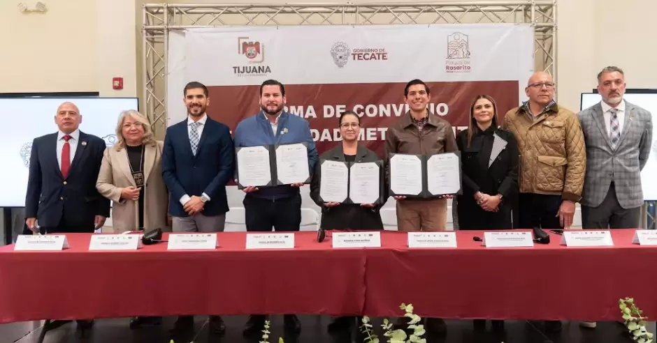 TECATE.- Como parte de las acciones encaminadas a fortalecer las labores de seguridad a través de estrategias conjuntas en la región metropolitana, los Presidentes Municipales de Tijuana, Ismael Burgueño Ruiz; de Tecate, Román Cota Muñoz, y de Playas de Rosarito, Rocío Adame Muñoz, celebraron la firma del convenio de coordinación en materia de seguridad.