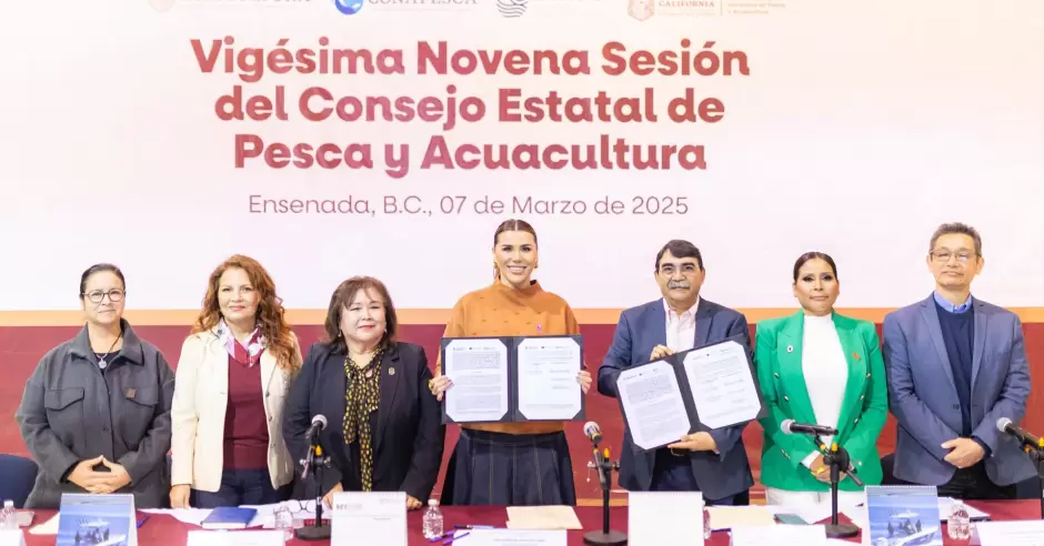 ENSENADA.- Para fortalecer el desarrollo de la pesca y la acuacultura en Baja California, la gobernadora Marina del Pilar Avila Olmeda y el comisionado nacional de Acuacultura y Pesca, Alejandro Flores Nava, firmaron un convenio de colaboración y formalizaron la instalación del consejo que permitirá implementar estrategias para el crecimiento sustentable del sector.