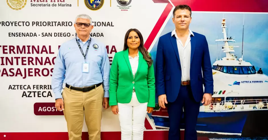 En la presentación del proyecto prioritario binacional participaron: el almirante en retiro Luis Javier Robinson Portillo Villanueva, director general de la Administración del Sistema Portuario Nacional (Asipona) de Ensenada; y, Josué Vázquez, representante de Azteca Ferries.