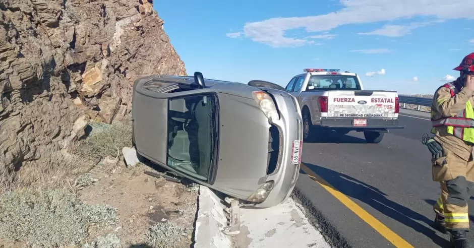 La intervención ocurrió a las 15:10 horas, cuando la unidad detectó un Toyota Corolla gris volcado fuera del carril, en el tramo ascendente hacia La Rumorosa.