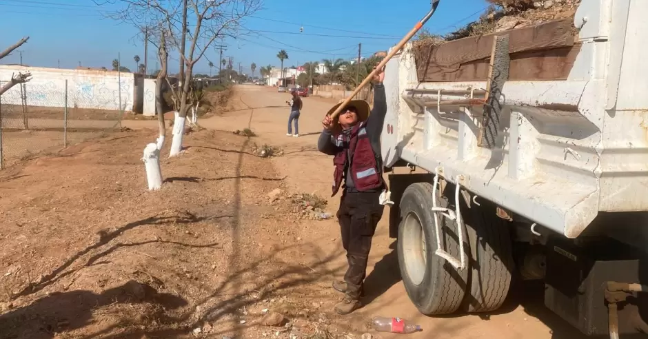 Ensenada.-En seguimiento al programa de mejoramiento de los entornos en comunidades rurales, la presidenta Claudia Agatón Muñiz, informó que se impulsó una jornada integral en las inmediaciones de la cancha de fútbol de la calle Rodolfo Sánchez Taboada, en la delegación Maneadero.