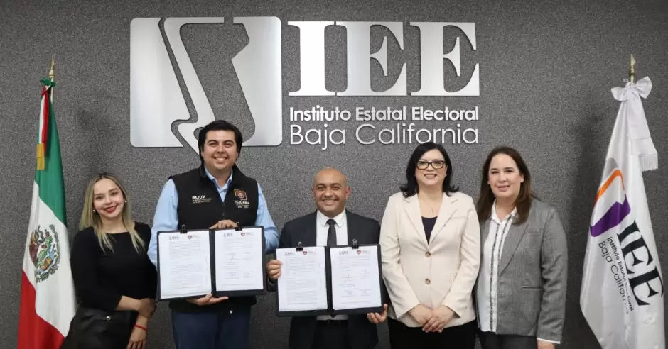 MEXICALI. - El Instituto Estatal Electoral de Baja California (IEEBC) y el Instituto Municipal de la Juventud de Tijuana (IMJUV) firmaron un convenio de colaboración, con el propósito de conjuntar esfuerzos que impulsen la formación ciudadana y la difusión de la cultura democrática entre las juventudes del municipio de Tijuana.