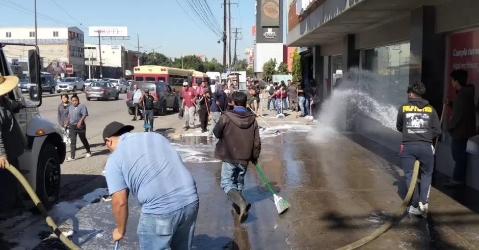 Posteriormente, las obras continuaron sobre el bulevar Díaz Ordaz, de la Delegación La Mesa, donde se intervinieron cerca de mil 700 metros cuadrados, con el barrido y lavado de la banqueta, contando con el valioso apoyo de comerciantes de la zona quienes se sumaron a los esfuerzos de limpieza.