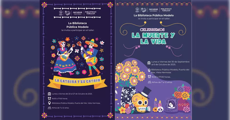 Detalló que del 23 al 27 de septiembre se llevará a cabo el Taller de Manualidades en Papel Reciclado; del 29 de septiembre al 3 de octubre se realizará el Taller Celebremos la Muerte y la Vida; y, del 20 al 27 de octubre, el Taller La Catrina y su Catrín, en los que se profundizará en esta tradición popular mexicana.