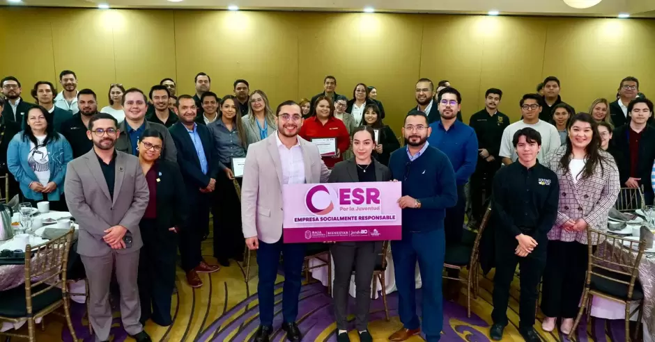 BAJA CALIFORNIA.- El Gobierno del Estado, a través del Instituto de la Juventud de Baja California (JuventudBC), llevó a cabo el Desayuno Empresarial 2025, en el que se reconoció a los aliados del programa Empresa Socialmente Responsable por la Juventud (ESR x la Juventud), iniciativa que impulsa el desarrollo académico, cultural, deportivo y emprendedor de jóvenes de la entidad mediante la colaboración del sector privado.