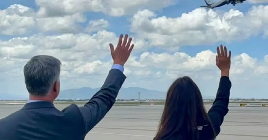Cameron MacKay, embajador de Canadá en México, despidió en el Aeropuerto Internacional Felipe Ángeles a Carney y a su esposa, Diane Fox Carney.