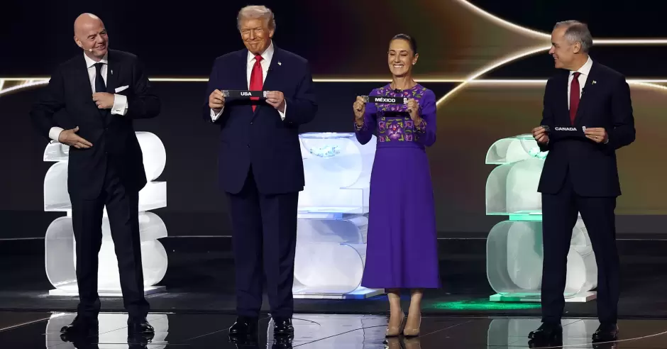 MÉXICO.- En un hecho inédito, la presidenta de México, Claudia Sheinbaum Pardo; el presidente de Estados Unidos, Donald Trump; y el primer ministro de Canadá, Mark Carney, coincidieron este viernes en un mismo escenario público durante el sorteo de la Copa Mundial de la FIFA 2026, que se realizará de manera conjunta entre los tres países.