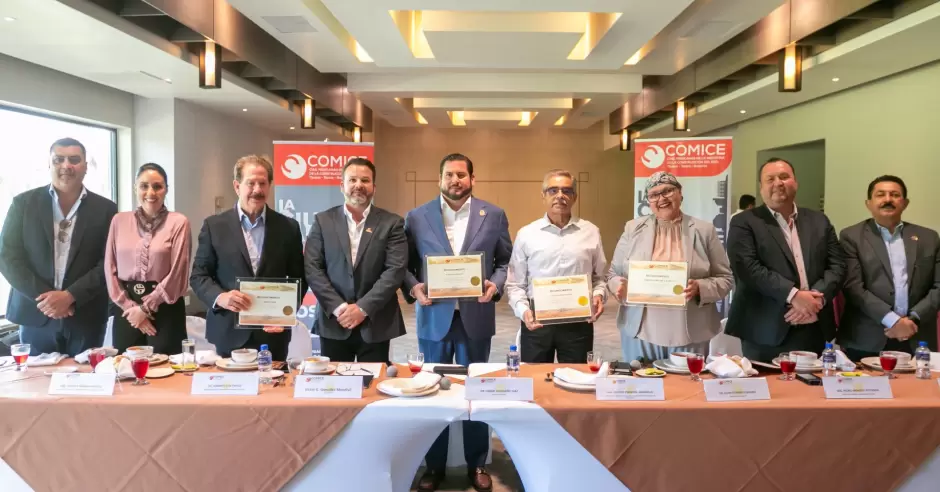 Durante este encuentro, el jefe de la comuna, Ismael Burgueño, acompañó al presidente de COMICE TTR, Víctor Gabriel González Mendívil, a la entrega de reconocimientos a empresas que el pasado mes de abril, se sumaron voluntariamente en la jornada de limpieza del camellón del bulevar 2000, lo que demuestra su compromiso por ser parte de las acciones para consolidar una Tijuana limpia y ordenada.