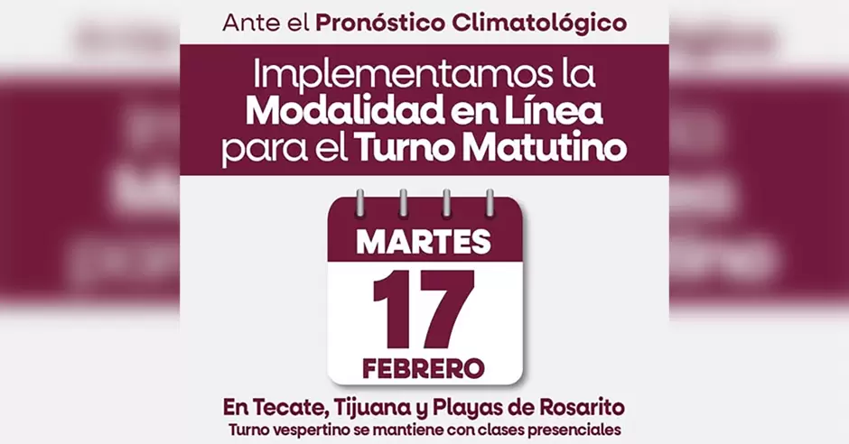 En tanto, en Mexicali, San Felipe, Ensenada y San Quintín las actividades escolares se desarrollarán de forma presencial durante toda la jornada.