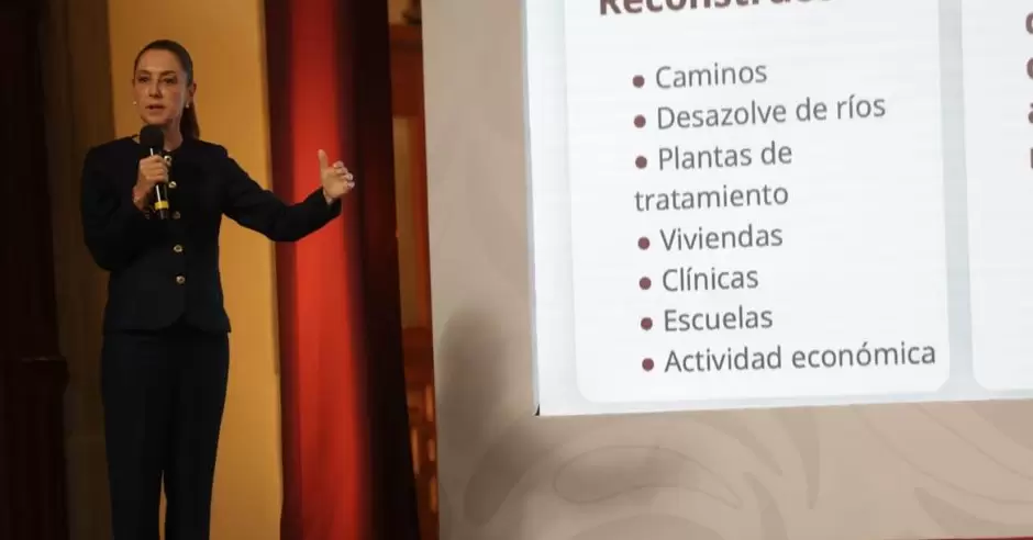 "El tercer eje es la reconstrucción porque no solamente se trata de limpiar los caminos o tener acceso provisional a los puentes tenemos que rehacer puentes, tenemos que regresar caminos, tenemos que reconstruir clínicas, reconstruir escuelas, y todo lo que tiene que ver con desazolve de ríos, plantas de tratamiento, la reconstrucción de las viviendas y, finalmente, reconstrucción de la actividad económica la localidad", enfatizó la mandataria.
