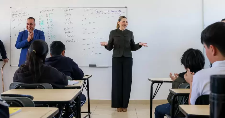 Reiteró el compromiso de seguir ampliando la infraestructura educativa en todo Baja California, así como de respaldar al alumnado mediante programas de becas estatales como lo es Corazón de Cimarrón, y federales como la Beca Universal Rita Cetina.