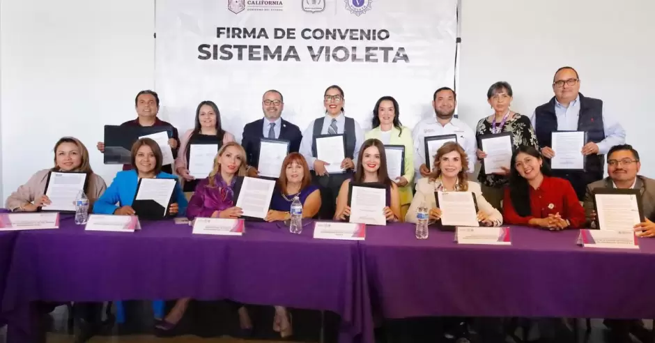 MEXICALI. - Dando continuidad a los compromisos que se tiene con las mujeres, niñas, niños y adolescentes desde el gobierno de Baja California, diversas instituciones estatales, así como una organización de la sociedad civil, firmaron el Sistema Violeta que encabeza la Secretaría de Seguridad Ciudadana (SSCBC) a través del Escuadrón Violeta, reforzando las acciones que pone en marcha la Gobernadora Marina del Pilar Avila Olmeda para dar una atención puntual a la violencia en razón de género.