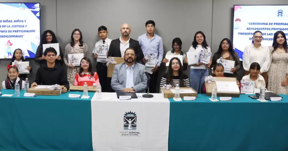 Mexicali.- El Poder Judicial de Baja California a través de la Dirección de Derechos Humanos y Asuntos de Género, realizó la entrega formal de premios a las niñas, niños y adolescentes (NNA) que obtuvieron los primeros lugares en el concurso estatal de dibujo, carta y ensayo: Protagonistas de la Justicia.