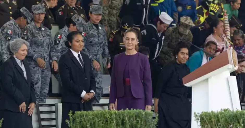 "Las mujeres mexicanas hemos sido y somos tejedoras de la patria, tejedoras de una nación libre y soberana", afirmó ante integrantes del Ejército, la Fuerza Aérea, la Marina y la Guardia Nacional.
