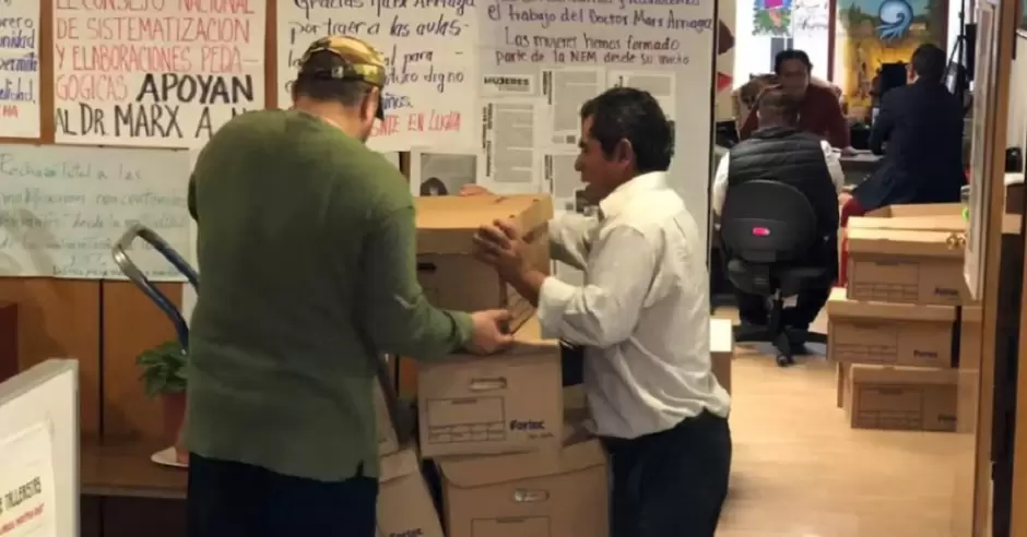 En medio de la polémica y las críticas por el desempeño de Marx Arriaga Navarro en la Dirección General de Materiales Educativos, EL UNIVERSAL captó a colaboradores del funcionario retirando artículos de sus oficinas ubicadas en Avenida Universidad, luego de permanecer atrincherado cuatro días.