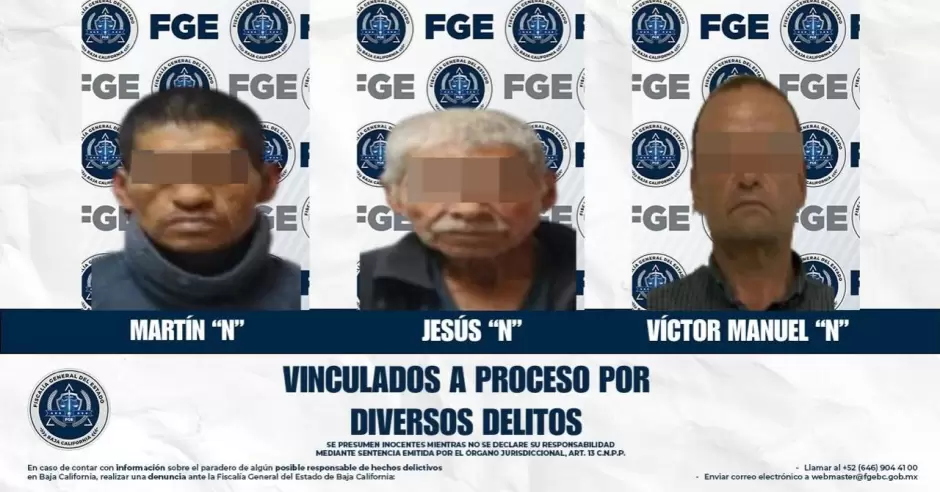 TECATE.- La Fiscalía Regional de Tecate, a través de la Unidad de Investigación de Delitos con Detenido, logró la captura de tres sujetos relacionados con distintos delitos, quienes actualmente se encuentran bajo medida cautelar de prisión preventiva.
