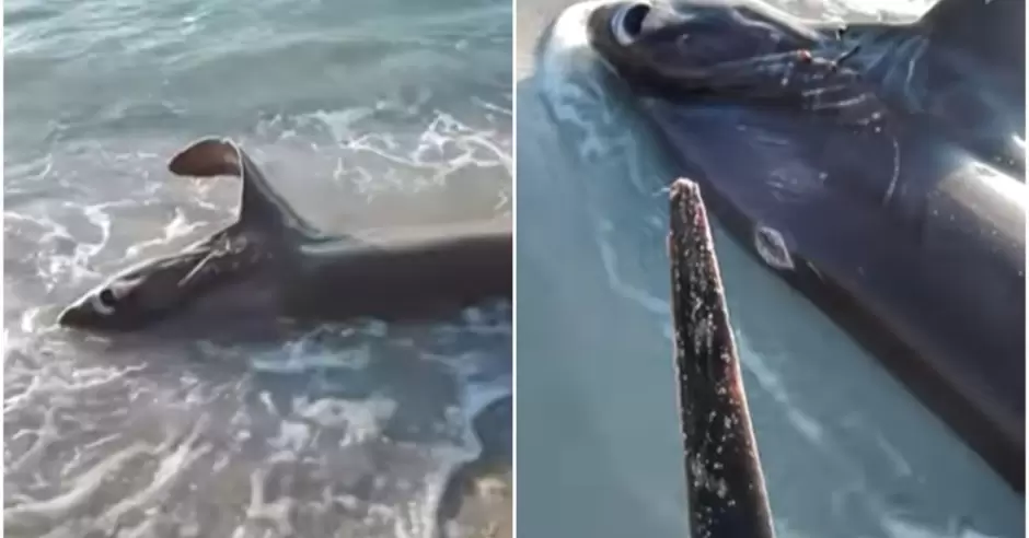 A través de redes sociales, el hallazgo fue documentado en video en donde los expertos mostraron al escualo por unos instantes, al acercarse logran extraerle la "espada" del pez que habría ocasionado su muerte.