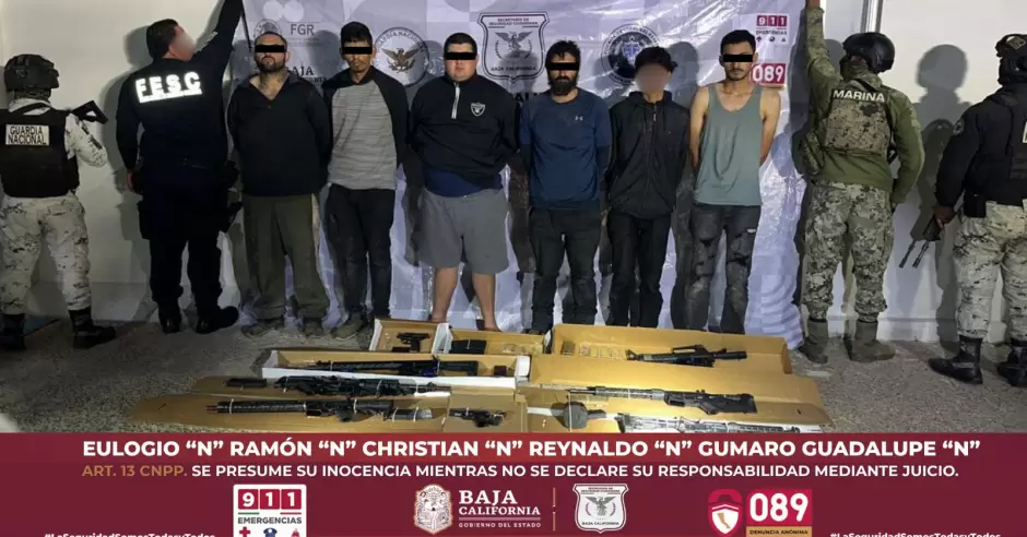 PLAYAS DE ROSARITO.- Seis presuntos delincuentes, entre ellos un menor de edad, fueron detenidos en el municipio de Playas de Rosarito, como resultado de un despliegue operativo que se activó por un reporte sobre detonaciones de arma de fuego. En la intervención conjunta participaron agentes de la Fuerza Estatal de Seguridad Ciudadana (FESC), elementos de la Secretaría de Marina (SEMAR), Guardia Nacional (GN), Secretaría de Seguridad y Protección Ciudadana (SSPC) Federal y de la Dirección de Seguridad Pública Municipal de Rosarito.